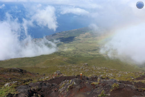 Trzeciego dnia idąc do Sao Caetano doszedłem do okolic wybrzeża, gdzie zrobiłem krótki postój po którym, wpierw skierowałem się w stronę plaży, aby zejść jak naj niżej. Tak rozpoczęła się wspinaczka na stratowulkan Pico, która po pokonaniu 15 Km i ponad 1200 metrów wysokości zakończyła się tego dnia w Casa Montanha, tj. domu górskim, gdzie należy się zarejestrować i opłacić dalsze wejście, pozostałem na noc dzięki uprzejmości obsługi. Już z samego rana ruszyłem w dalszą drogę. Warunki byłyna początku podejścia kiepskie, ale miałem pewność, że nie zastanie mnie noc na szlaku w rezerwacie przyrody, gdzie teoretycznie nie powinno się obozować (choć wypełniając dokumenty widnieje rubryka z możliwością pozostania na noc, jest to pewnie jakoś uregulowane przepisami bądź pozostanie z przewodnikiem). Założyłem latarkę czołówkę, aby rozświetlić pochmurny i deszczowy poranek i ruszyłem ku wierzchołkowi. Droga dużo trudniejsza niż podejście do Casa Montany, mająca ok 4 km za to ponad 1000m w górę więc całkiem stromo, wejście momentami trzeba było wykonywać na czterech, ponieważ przy takich warunkach atmosferycznych nie trudno o wypadek. Mimo słabej widoczności na początku, ale dzięki bardzo dobrze oznaczonemu szlakowi szybko wydostałem się ponad chmurę deszczową i mogłem już spokojnie iść. Po chwili ukazał mi się krater na widok którego, zaparło mi dech w piersiach, wszedłem na najwyższy szczyt Portugalii mający 2351m.n.p.m. Widok niesamowity, jak bym był na innej planecie mając po wejściu w około wysoką ścianę zapadliska kaldery wulkanicznej ruszyłem przed siebie, wędrując zdecydowałem się wdrapać na stożek, który usytuowany wyżej wznosił się nad głową, dochodząc jak naj wyżej się dało, zachowując względy bezpieczeństwa uznałem podejście za sukces, po odpoczynku zacząłem schodzić co okazało się nie lada wyzwaniem, ponieważ na tak stromej skale łatwo o kontuzję. Dotarłszy do miejsca meldunku oddałem GPS, zjadłem posiłek i ruszyłem do miasta Sao Mateus, gdzie czekał na mnie przytulny domek z kamienia wulkanicznego w którym po podejściu wypoczywałem.